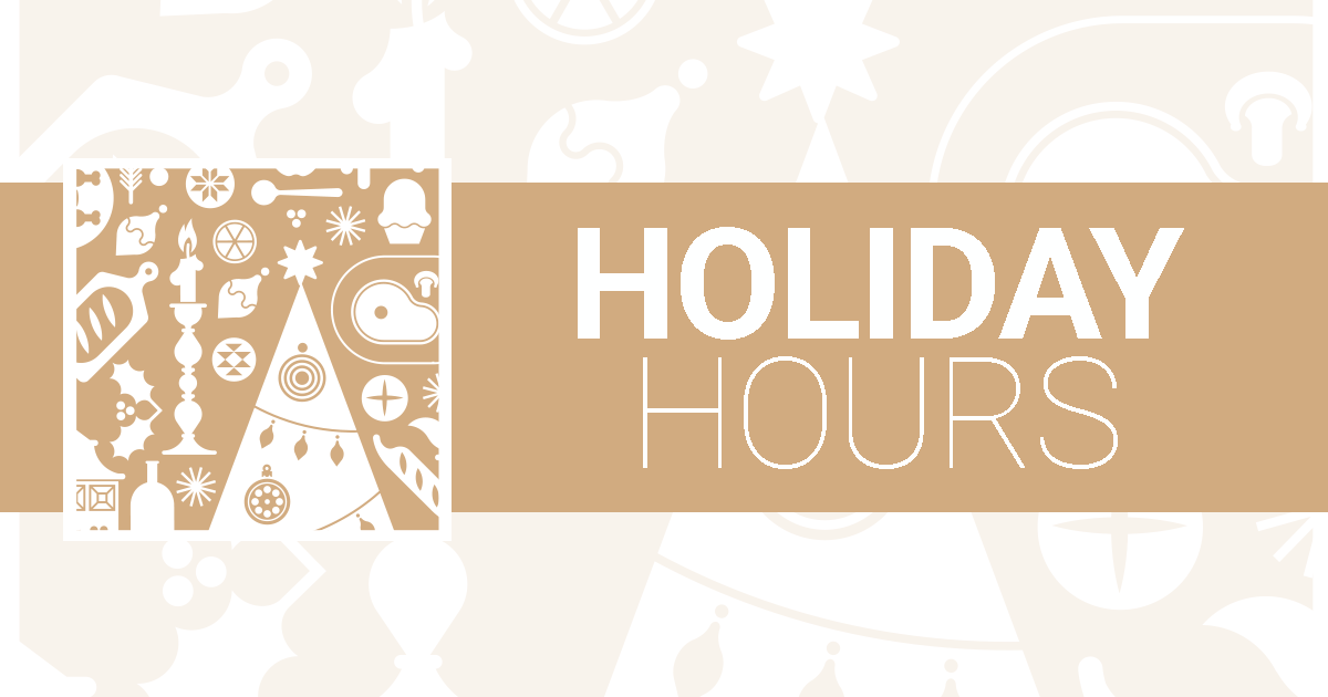 Please see our holiday hours so we don’t miss your visit this week or next.
