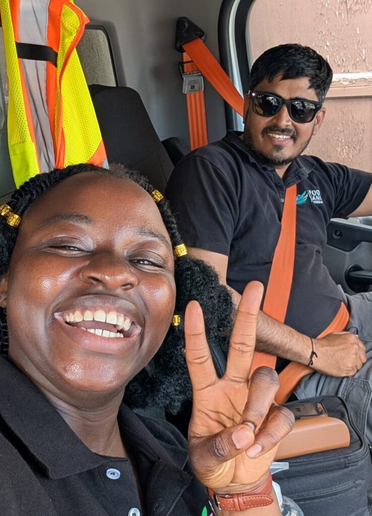 I love travelling and going on little adventures, so when I got invited to go on a ride-along with one of the Food Banks Mississauga truck drivers, I was immediately in! I was paired with Nikhilkumar Mistry (Nik) — who I quickly found out really loves driving (like, really), doesn’t need a GPS to get around, and has a deep love for playing cricket. We vibed instantly, and I was excited to learn what a “day in the life” looks like for folks on the frontlines of food banking.